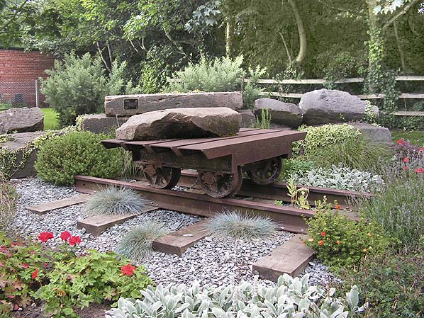 ![]() This feature on the grass verge at the bottom of the embankment has been created as a memorial to the Hooton to West Kirby Line. A length of narrow gauge track may at first seems inappropriate however there were collieries in this area that linked to the line at Parkgate and these would have used narrow gauge track.