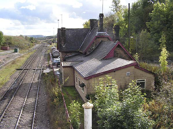 Looking south at Peak Forest Station in October 2009. The grass area to the left was the site of the southbound platform. The northbound platform has also been demolished except for a small section which is used to facilitate the boarding of freight trains.