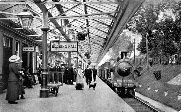 ![]() Peebles station looking north-west c.1908. 487 was an NBR M Class Abbotsford 4-4-0, the name of the class derived from the use of 429, Abbotsford, on the official Neilson photograph. Built between 1877 and 1879 by Neilson and Co and named 'Montrose', it was rebuilt in 1904 along with its 11 classmates. 427 was to find fame in July 1916 when, whilst hauling a special train from Waverley to Carlisle, Driver D. Murray and Fireman J Ronalds completed the run in 1hr 44mins including a 9 min signal stop at Hawick. Although the load was only 32 tons, this was a record for the Waverley route which still stood in 1969 when BR closed the line. All the Abbotsfords were withdrawn by October 1926. Copyright photo from John Alsop collection |