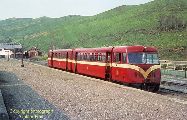 Railcars 20 & 19 wait to leave Peel with a Douglas service in 1967