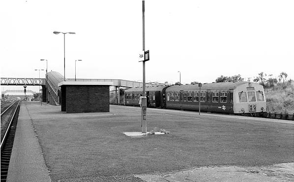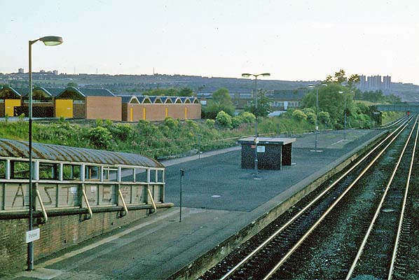 The Reshaping of British Railways (‘Beeching’) report of March 1963 did not recommend the Newcastle – Sunderland / South Shields local services and stations for closure, but the Washington route was earmarked. The closure to passengers of the line to Washington on 9 September 1963 entailed the withdrawal of the Newcastle to Washington train departing from Pelaw at 8.44 am and a reverse working from Washington to Newcastle which called at 5.47 pm, both operating on Monday-to-Friday only. As part of the programme of withdrawing goods services from wayside stations, Pelaw ceased to handle this traffic on 4 October 1965. On 2 January 1967 the North Eastern Region was abolished and its lines and stations were transferred to Eastern Region management. The Newcastle – Sunderland and South Shields branch local services were among those changed by the Eastern Region to ‘Paytrain’ operation in which, as an economy measure, booking offices were closed at all but the most important stations and tickets were issued instead by conductor-guards on the train. Pelaw and all of the other intermediate stations between Newcastle and Sunderland / South Shields consequently became unstaffed on 5 October 1969. Without staff in place, Pelaw station buildings were targeted by vandals. In early 1972 BR demolished all of the buildings, replacing them with a brick shelter. Electric lighting on the tall vandal-proof standards favoured by the Newcastle Division of the Eastern Region was installed. In 1974/5 Corporate Identity name signs were added.