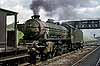 The DJ’s crowning glory was the stately stone viaduct over the River Wear between Penshaw and Washington, and based upon the Roman bridge at Alcántara, Spain. The last stone was laid on the day of Queen Victoria’s coronation, 28 June 1838, thus it was named Victoria Bridge (or Viaduct). The engineer T E Harrison constructed four main arches, those at each end of 100ft span and the two central arches of 160ft and 144ft; the total length was 811ft and the height above water level was 135ft. In 1843 the DJ became part of the portfolio of the ambitious George Hudson (the ‘Railway King’) as part of his plan for an integrated east-coast route. The Act of 23 May 1844 which confirmed his purchase of the line also made provision for the project of bridging the Tyne.