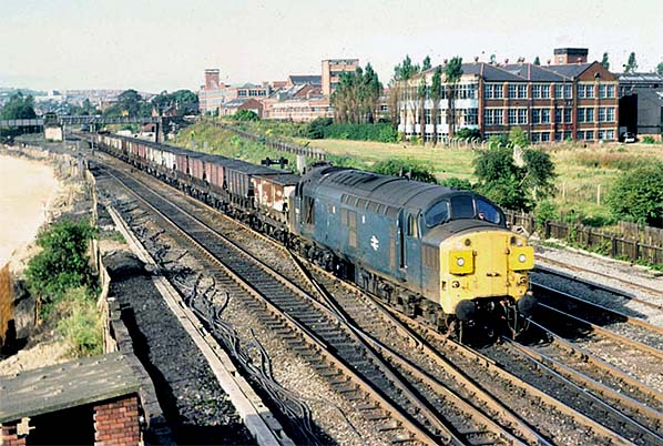 ![]() A Class 37 heads southeast through Pelaw on its way to either Sunderland or Leamside in 1980. On the left, hardcore has been laid for the new Tyne & Wear Metro. The huge CWS factory in the background has disappeared since the time of this photograph.