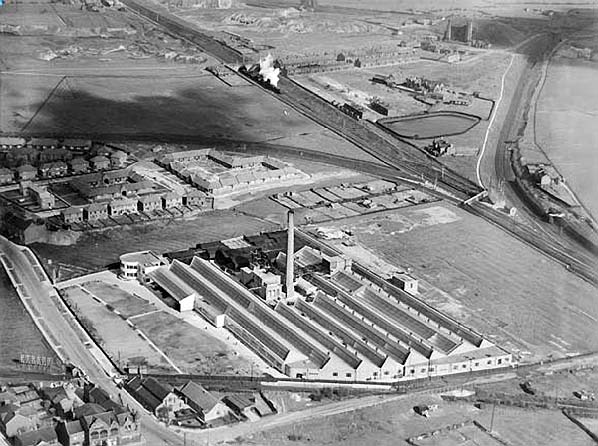 ![]() :Looking eastwards from a point to the north of Pelaw (third) station the three routes which diverge here can be seen. Heading north (left) is the South Shields branch; the Washington and Leamside line heads off to the south (right); between them is the line to Sunderland, with a locomotive passing the site of Springwell station.