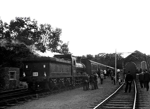 ![]() Station Name: PENICUIK![]() Branch Line Society/SLS J36 railtour at Penicuik on 29 August 1964. This was the last passenger train to use the Penicuik branch. 65234 is an ex NBR/LNER J36. Built between 1888 and 1900 to a Holmes design, these locos were rebuilt by Reid and Chalmers. 65234 was withdrawn from St Margarets shed on 22.4.67 but lasted at the shed until July of the same year as a stationary boiler before being cut up. One example (65243, Maude) is preserved by the SRPS. Photo by Kenneth Gray courtesy of Bruce McCartney from Railscot web site |