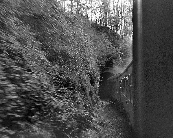 The west portal of 167yd Allt-y-Cefyn tunnel, seen from the WRS ‘Central Wales Railtour’ on 17 November 1968. The tunnel, one of two on the Newcastle Emlyn line, is 500yd west