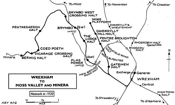 See also Moss Valley Line: Gatewen Halt, Pentre Broughton Halt, Gwersyllt Hill Halt & Moss Halt
