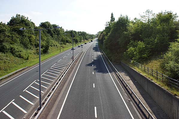 Penwortham bypass. Photo by John Mann ![]() The site of Penwortham Cop Lane station looking south-west in July 2011. All traces of the station had been lost under Penwortham bypass. This photograph was taken from the same viewpoint as the two pictures above.