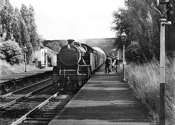 ![]() On a glorious summer afternoon in July 1963 Stanier 2-6-4 tank No. 42494 rolls into Penwortham (Cop Lane) station with the 5:30 pm Preston - Southport service, collecting some late day-trippers apparently brought out by the fine weather.