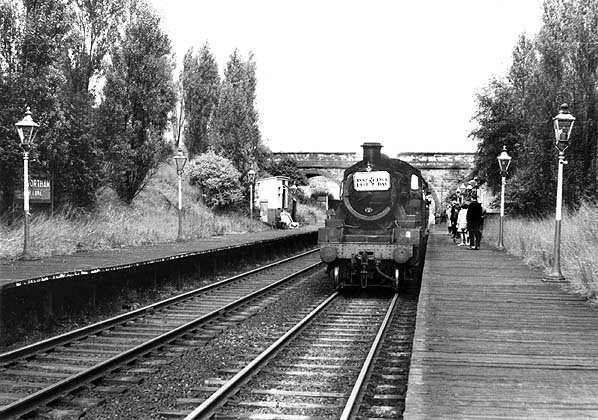 Photo by Alan Castle ![]() Although prolific on other routes in the Southport and Preston areas by this time - and particularly so in East Lancashire - no diesels of any description were ever used on regular service trains over the WLR. DMUs and Brush Type 2s sporadically appeared on inter-regional excursions, generally originating in Yorkshire, but even this was a relatively rare occurrence. On Sunday 9 August 1964 a Scottish Region 6-car 'Swindon Inter-City' unit, a type more accustomed to the hilly road from Glasgow to Stranraer, was used throughout for a day excursion from Ayr to Southport Chapel Street, organised in connection with the 'Kilmarnock Grozet Fair'. With passengers fully apprised of the delights of Southport, this view shows them back on board with the train making good headway on its lengthy return journey, here seen passing non-stop through Penwortham (Cop Lane) station.