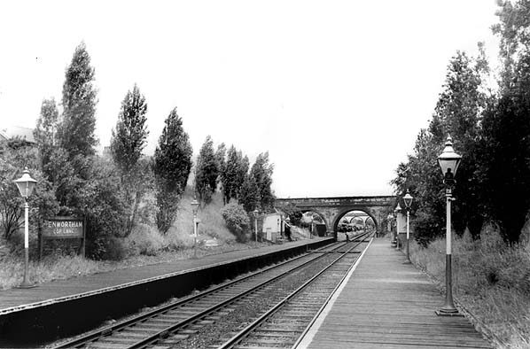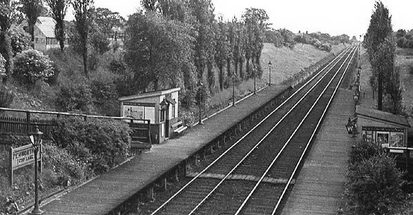 Photo from John Mann collection ![]() Penwortham (Cop Lane) station looking north-east from the western end of the up (Southport-bound) platform in the early 1960.