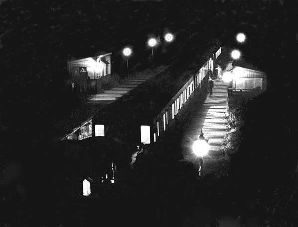 ![]() Last train of the day at Penwortham (Cop Lane) on a December evening in 1964, the 11.20 pm Saturday-only Southport - Preston service disgorges a small group of revellers onto the wooden platforms, returning to their beds after a night out in the hot-spots of Southport. Within a few short weeks, they will discover, to their eternal regret, that the alternative bus service to be offered by Ribble Motors will provide a much less convenient facility, particularly at such a late hour as this. Fares will also soon start to rise dramatically. At this time, by train, a day-return ticket to Southport is 3/6d (17½p). In the opposite direction, the day return fare to Preston amounts to the princely sum of 7d (3p). Photo by Alan Castle ![]()