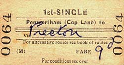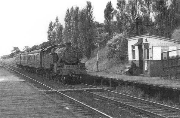 Looking south-west from the up (Southport-bound) platform at Penwortham (Cop Lane) station in July 1964. A Southport to Preston service can be seen arriving at the station.