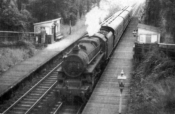 Looking south-west at Penwortham (Cop Lane) station in August 1964 as a Preston service departs from the down platform.