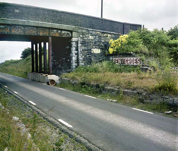 The north end of Penygroes station showing the painted sign on the down platform in May 1979. Photo by Nick Catford