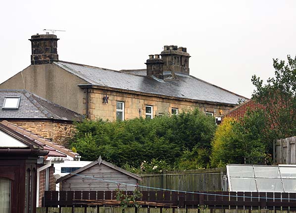 Looking east at the site of Percy Main station in June 2011. The photographer is standing on the site of the sidings looking towards the station which followed the curving line of the building which is the the upper floor of the Percy Arms pub.
