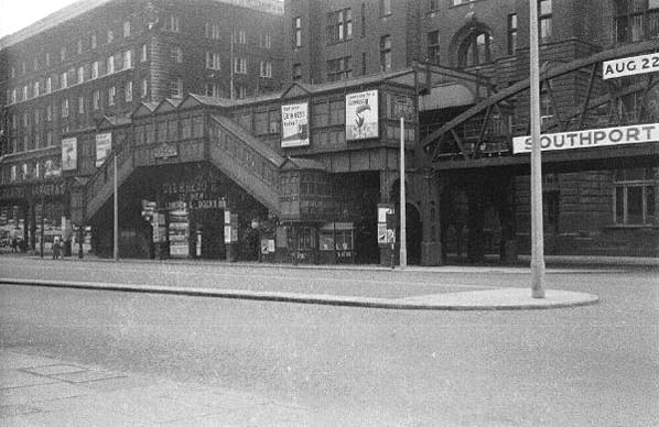 Pier Head station from the street in the 1950's with Liver Building in background.
