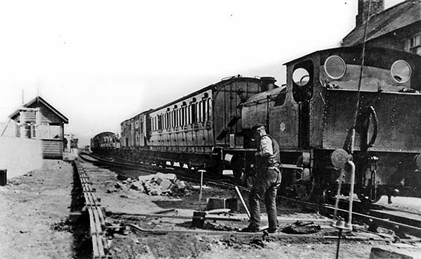 On 1 July 1908 the KER bought the G&KER and on 29 July 1908 the line to Knott End opened. Pilling station gained an additional platform which served up direction (eastbound) trains. A signal box was also provided just to the west of the up platform. Level crossing gates had also been installed. At some point between 1910 and 1930 a long single story corrugated iron shed was erected in the goods yard.