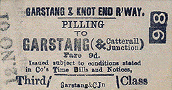 Notes: When it opened on 5 December 1870 Pilling station was the western terminus of the Garstang& Knot (sic) End Railway (G&KER), a 7 mile single track line that connected to the London & North Western Railway (LNWR) company’s west coast trunk route at their Garstang (Junction) station. The original intention of the G&KER was to have the terminus 4½ miles further west at Knott End but financial issues prevented that from happening.