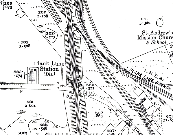 In 1912 the Manchester Exchange to Blackpool Talbot Road train was given a booked stop at Plank Lane. Departure from Plank Lane was at 9.42am and Blackpool was reached at 10.55am.
