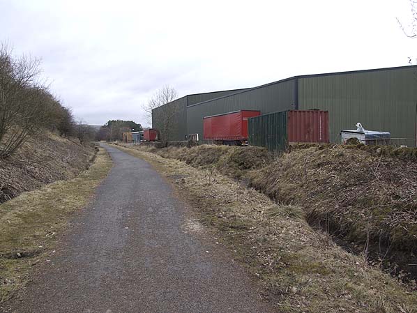 The site of Plenmeller colliery looking north in March 2010. The South Tyne Way footpath follows the course of the Alston branch past the colliery site.