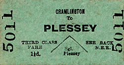 When the Newcastle & Berwick Railway opened in 1847 a handsome building was provided immediately north-west of the Shotton Lane level crossing, on the down side of the double track, where Plessey station was later to open. The building was similar to that at Forest Hall which, like Plessey, did not operate as a timetabled passenger station until the 1850s, and it was larger than most of the crossing-keepers’ cottages so the intention might have been to handle goods traffic there or eventually convert it to serve as a fully-fledged station. It is likely that platforms were installed to allow market trains to call prior to the appearance of the station in Bradshaw of July 1859. Early public timetables gave the name as ‘Plessy’; the working timetable called it ‘Plessay’. From 1864 the spelling ‘Plessey’ was used.
