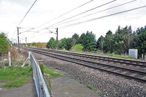 ![]() Looking north-west from the site the former level crossing at Plessey in December 2005.