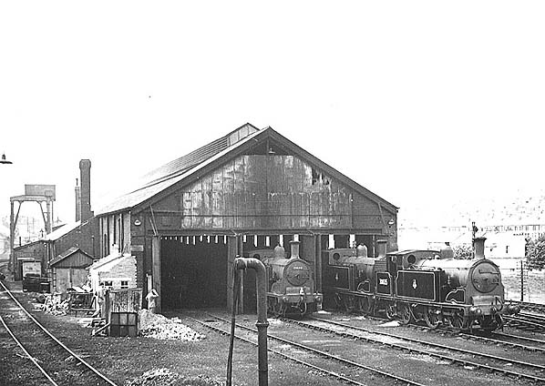 ![]() The second Plymouth Friary shed was a 3-road building some distance west of the terminus, adjacent to Lucas Terrace Halt. It opened in June 1908 and closed 6th May 1963. The shed was renowned in BR days for its allocation of four very difficult to catch West Country Pacifics! The picture shows a classic LSWR 'glasshouse' building. Photo from Roger Griffiths collection