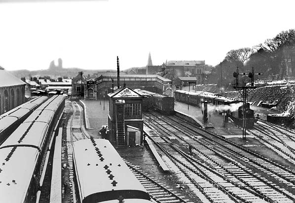 Looking east from Tothill Road bridge towards Plymouth Friary station in December 1927
