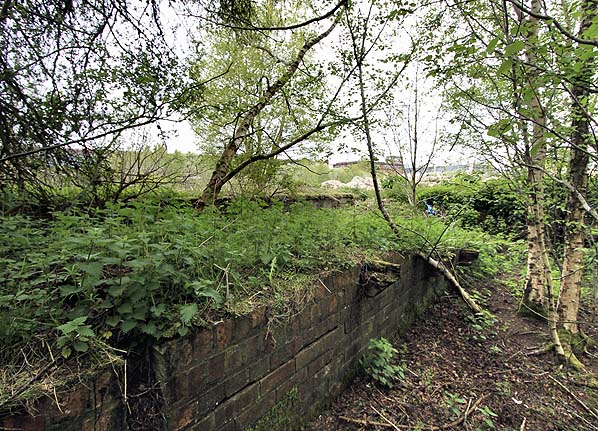 Pomathorn Halt looking north in May 201 The base of the station building can bee seen on the platform.