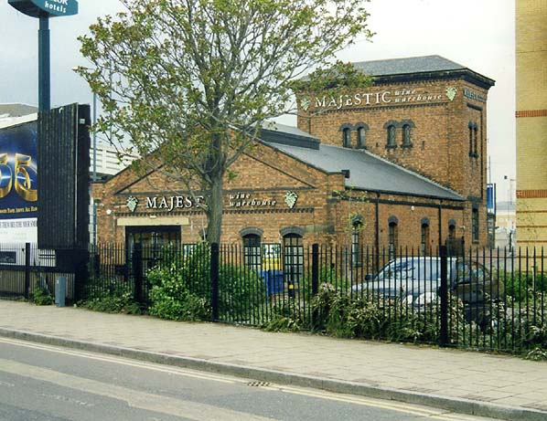 Pumping station and hydraulic accumulator tower for Poplar Dock in April 2002. This was adjacent to a a branch line to the Midland Railway Dock from a junction just west of the first Poplar Station.
