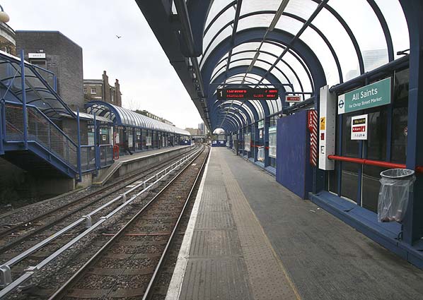 The DLR's All Saints Station looking south in March 2009. Poplar High Street