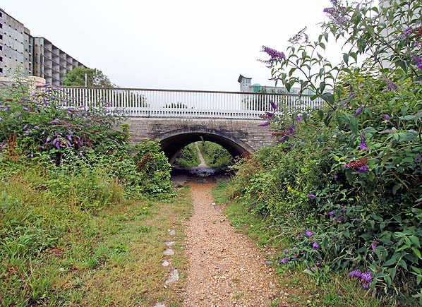![]() Station Name: PORTLAND HOSPITAL HALT![]() This new bridge over the Merchants' Railway is for access to the Ocean Views development. The girder bridge carrying the Easton line was on the far side of this bridge. (July 2013).