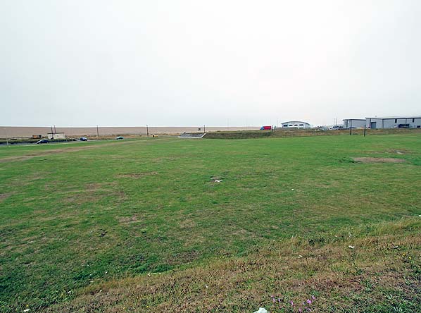 ![]() Lerrett Road now runs through the middle of the Portland station site following the line of the former station approach road. This view is looking south-east (towards Weymouth) at the site of the station. Although not visible in this picture the course of the railway is clearly visible