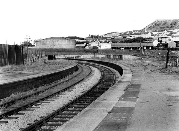 Portland station looking towards Easton from the up platform c early 1960s. Portland gas works is seen in the background