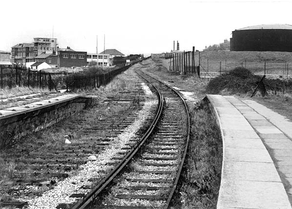 ![]() Portland station looking towards Easton in January 1969, Castle Road bridge is seen in the distance RNAS Portland control tower is seen on the left.