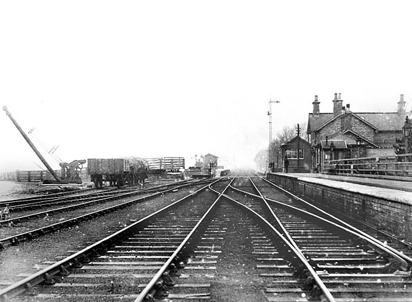 Potto Station station looking west in 1920, the westbound platform can be seen on the far side of the level crossing. The goods yard with its 5 ton crane is seen on the left.