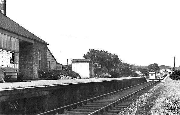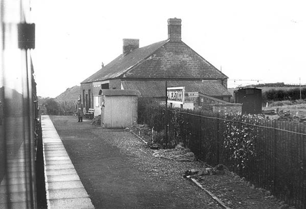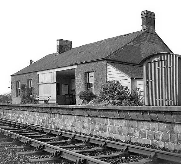 The station was reached by a short approach road from the south-west. The single platform, on the up (north-west) side of the track had an austere brick cottage, with a tall ridged roof which could serve as a cottage if the station did not pay its way. A recessed area towards the north-east end of the building provided shelter for passengers. In later years |