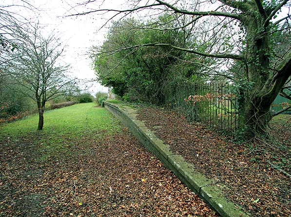 Powerstock station looking south-west in December 2011. The original metal railings at the back of the platform are still in place.