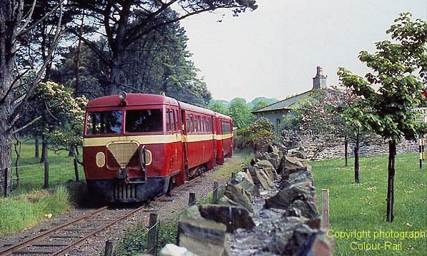 ![]() Railcars 19 & 20 bound for Douglas passes the site of Quarter Bridge Halt in summer 1967