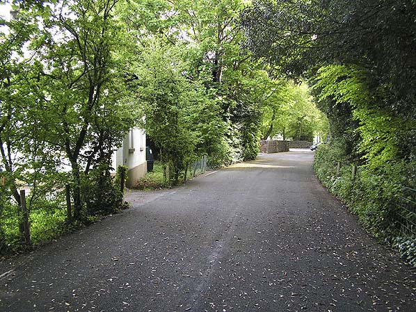 Photo by D. J. Mitchell copyright Colour-Rail ![]() Quarter Bridge Halt is not shown on any maps and has been inserted here in its assumed position ![]() Peel - Douglas train at Quarter Bridge crossing in 1955 Photo by J L Smith ![]() The site of Quarter Bridge Halt in November 2007 Photo by Lloyd Kinley ![]() Looking south at the site of Quarter Bridge Halt in May 2010. To the left of the picture can be seen a cottage that would have provided accomadation for the Crossing Keeper. The crossing itself was located at the point where a car can be seen crossing the route of the line. Photo by Paul Wright
