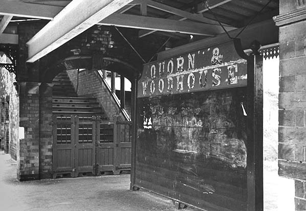 Quorn & Woodhouse Station in February 1975, note 'Main Line Steam Trust' chalked on the board, at this date the line had been open for a few months although little restoration had taken place.
