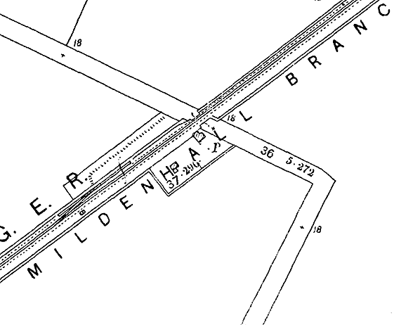 In an attempt to encourage more business, on 20 November 1922 the GER opened three halts on the line at Fen Ditton, Exning Road and Mildenhall Golf Links. They were on the up side of the line, i.e. on the left side of Cambridge-bound trains, and on the Cambridge side of adjacent road overbridges (Bridges 2236, 2242 and 2257 respectively). They were rudimentary affairs: a footpath led down the embankment from the road to end at a low cinder 'platform' faced with what appears to have been old sleepers.