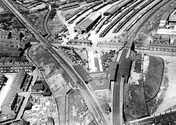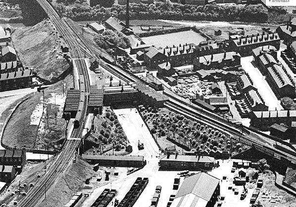 Copyright photo from the National Railway Museum collection with permission ![]() Photo from the Britain from Above website with permission ![]() Photo from the Britain from Above website with permission ![]() Photo by John Mann ![]() The disused former Radcliffe West Fork up line platform seen in May 1975. Originally numbered as platform 2 it became platform 3 in 1959 when the station was rebuilt. There were no regular services from this platform in 1959 but it was provided to serve excursion and holiday trains.
