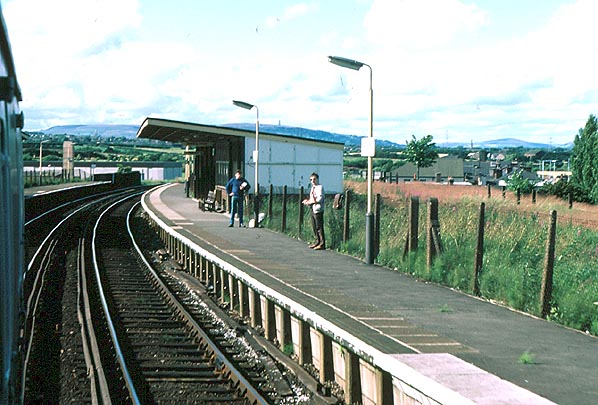 The up Radcliffe East Fork platform looking north on 19 July 1985. At this time the platform was numbered as 1. Before 1959 it had been numbered as platform 4.
