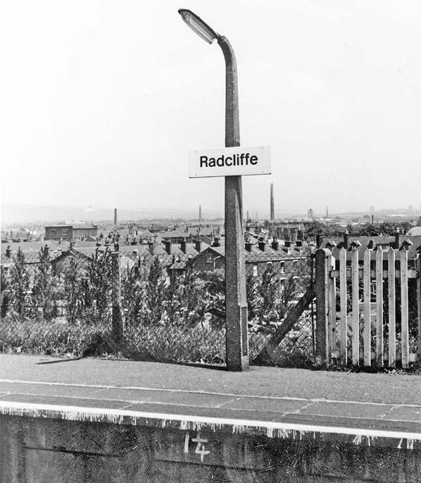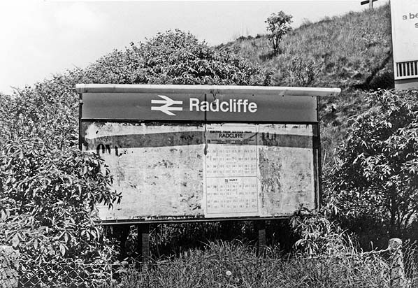 Photo by John Mann ![]() When the station was renamed as simply Radcliffe in 1971 it was fitted with new signs of the type shown in this view from May 1975. Photo by John Mann ![]()