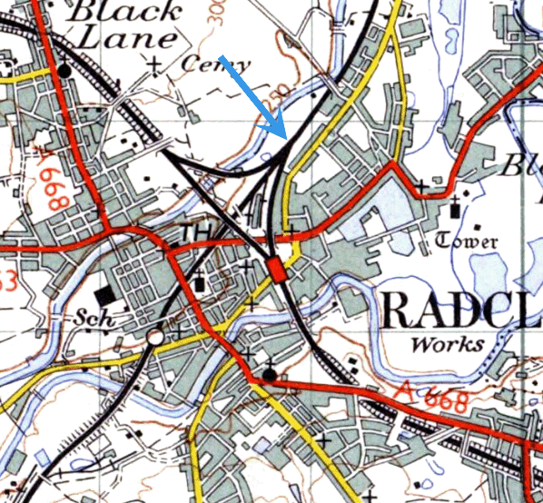 Radcliffe North Junction signal box was situated on the Clifton Junction – Bury line (opened 25 September 1846) at its junction with the Manchester Victoria – Radcliffe line (opened 1 September 1879) and the Radcliffe West Fork (opened 1 December 1879).