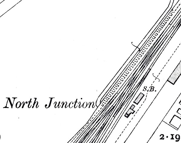 Opened in 1879 (but it was not inspected until 4 March 1880) the box was located on the up side of the line (the east side) adjacent to the junction. It was a tall Gloucester Wagon Company Size 9 box with a brick base and timber upper cabin. It was equipped with a 45 lever Gloucester Wagon Company frame.