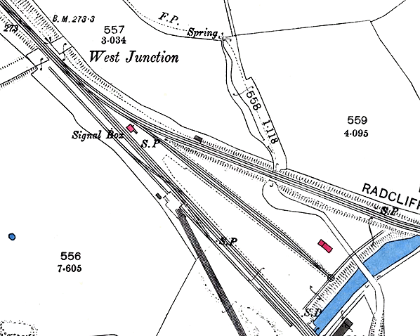 Radcliffe West Junction signal box was situated on the Lancashire & Yorkshire Railway (LYR) Cheetham Hill – Bradley Fold Junction line. The section of line on which the box stood opened on 1 December 1879.