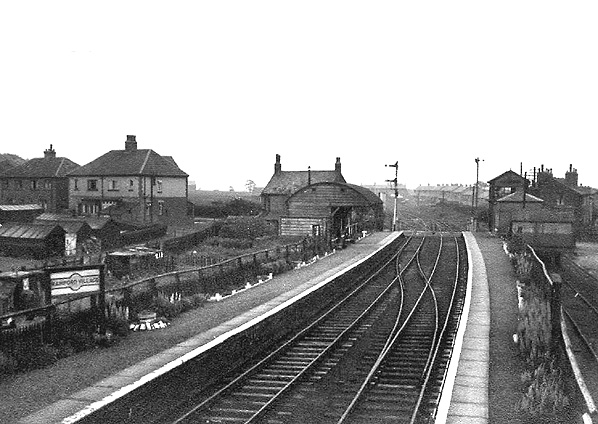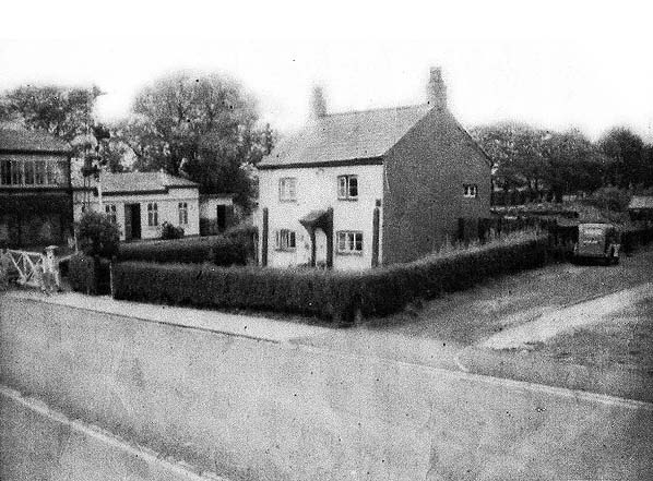 A view looking north-west towards Rainford Village station in the 1940s. The house seen in the view was known as 'Station House' but it pre-dated the railway by over a century being built in 1733. When it was demolished in 1977 it was the oldest house in the village. The last occupant of the house